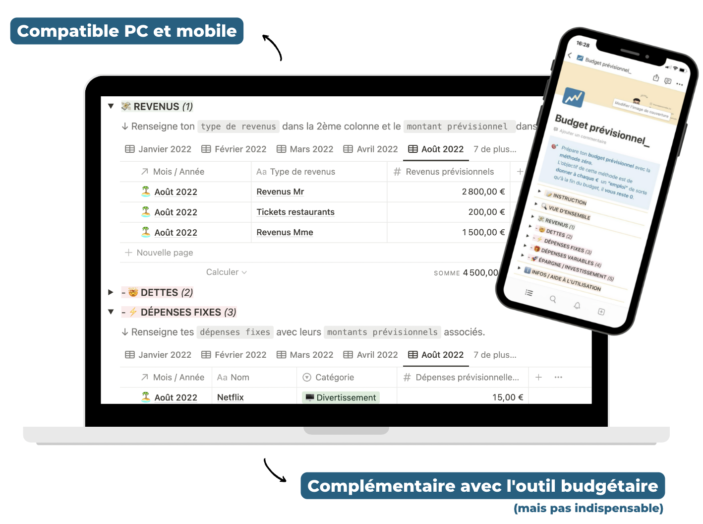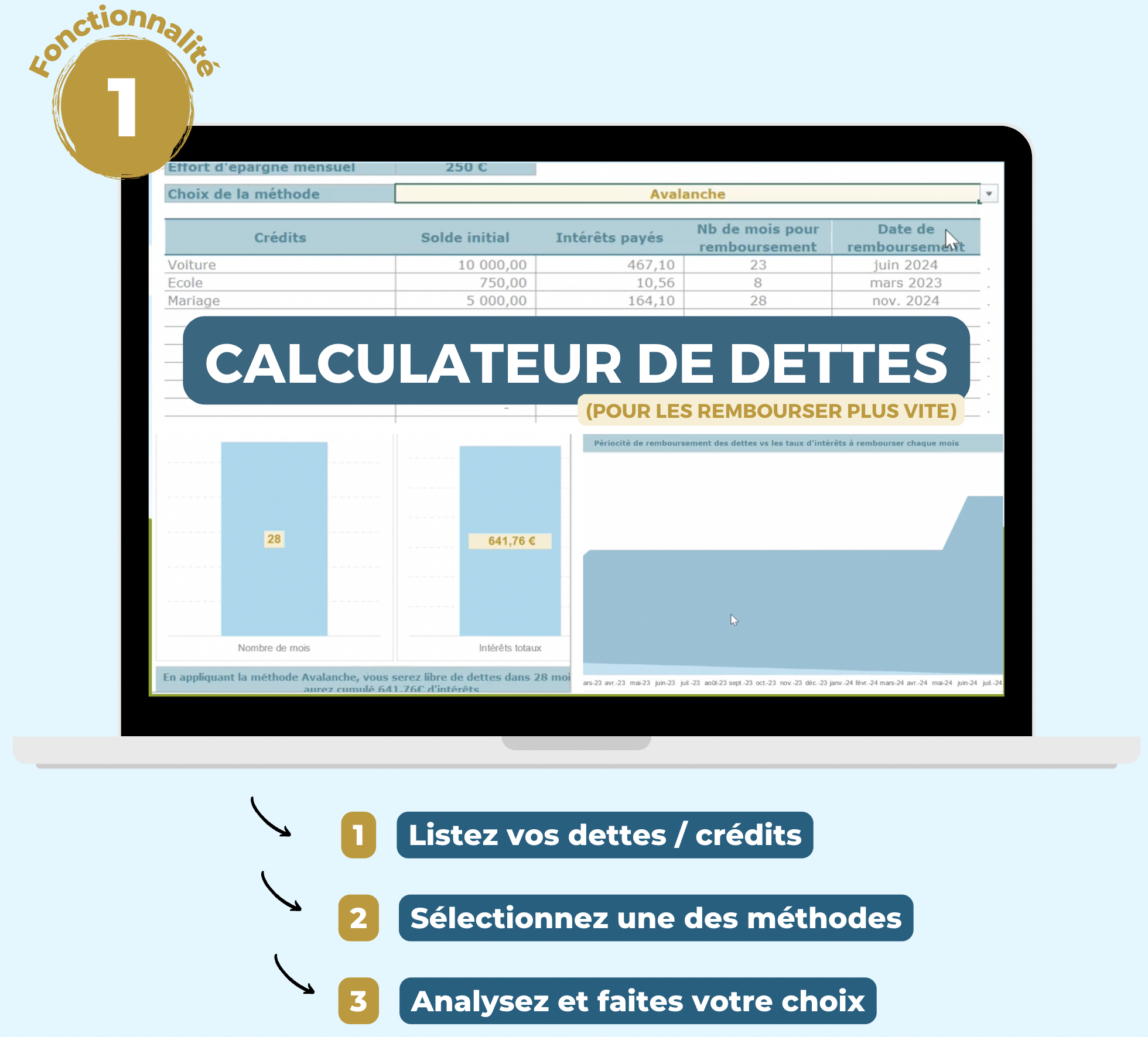 ⚙️ Profitez de plusieurs outils au même endroit... 👩🏻💻 ... pour effacer vos dettes et vous projeter financièrement 🤝 Achat sécurisé & fixe (pas d'abonnement)